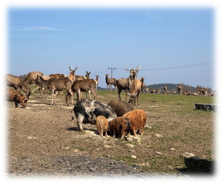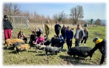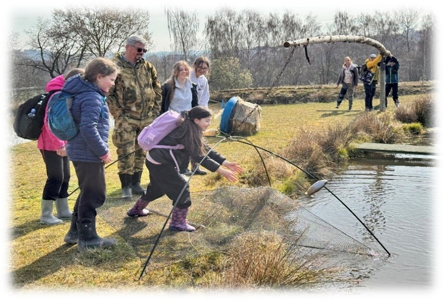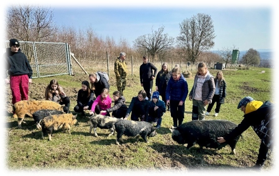 Vybraní zástupci parlamentu a EKOtýmu přijeli v ranních hodinách na farmu, kde je přivítala paní majitelka i oslíci. Ty si mohly děti pohladit a přejít s nimi na oboru, kde na ně již čekala prasátka plemene kune kune, karpatští jeleni, srnky i krávy. Paní majitelka ukázala žákům, jak a čím se zvířata krmí, představila jim historii farmy a ochotně zodpovídala velké množství otázek. Všichni si mohli zvířata pohladit či zkusit rybolov s velkou čtvercovou sítí. Dětem se výlet líbil a doufají, že si ho budou moci ještě někdy zopakovat.