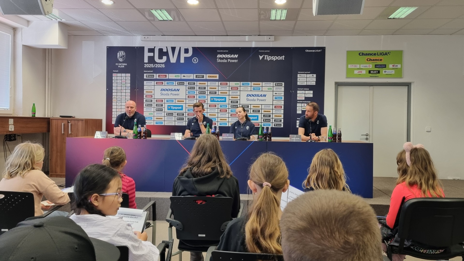 Program začal prohlídkou stadionu, která děti velmi zaujala. Měly možnost nahlédnout do prostor, kam se běžní fanoušci nedostanou, a dozvědět se zajímavosti ze zákulisí klubu FC Viktoria Plzeň. Poté už následovala samotná tisková konference, kde se žáci setkali s profesionálními hráči Patrikem Hrošovským, Valentýnou Maršíkovou a asistentem trenéra Markem Bakošem.